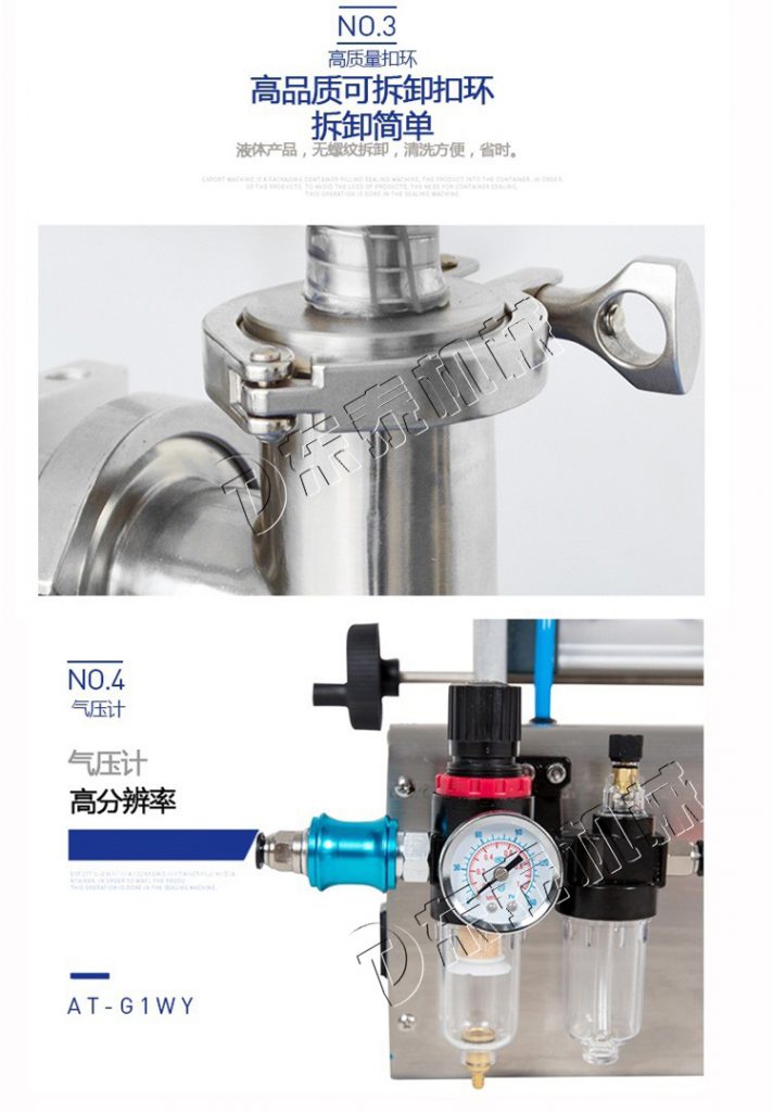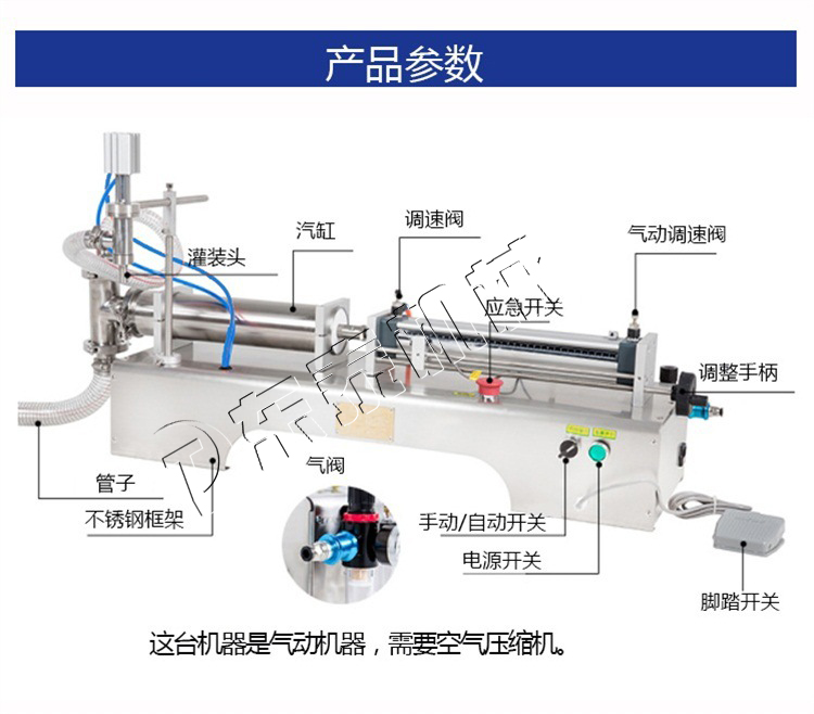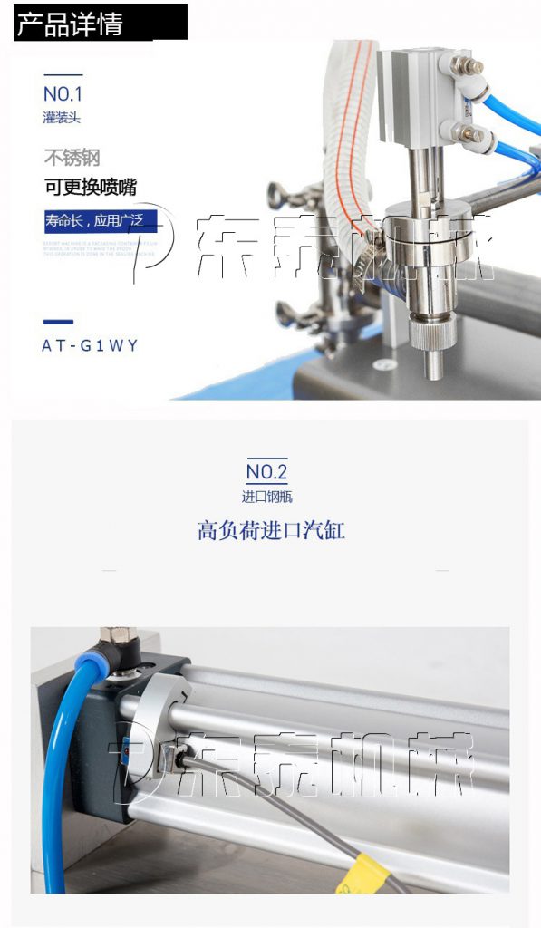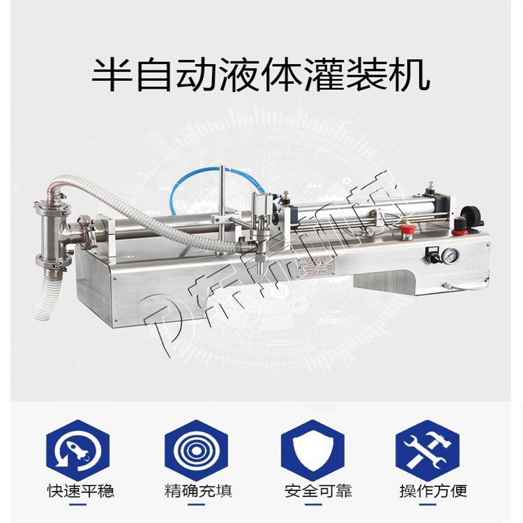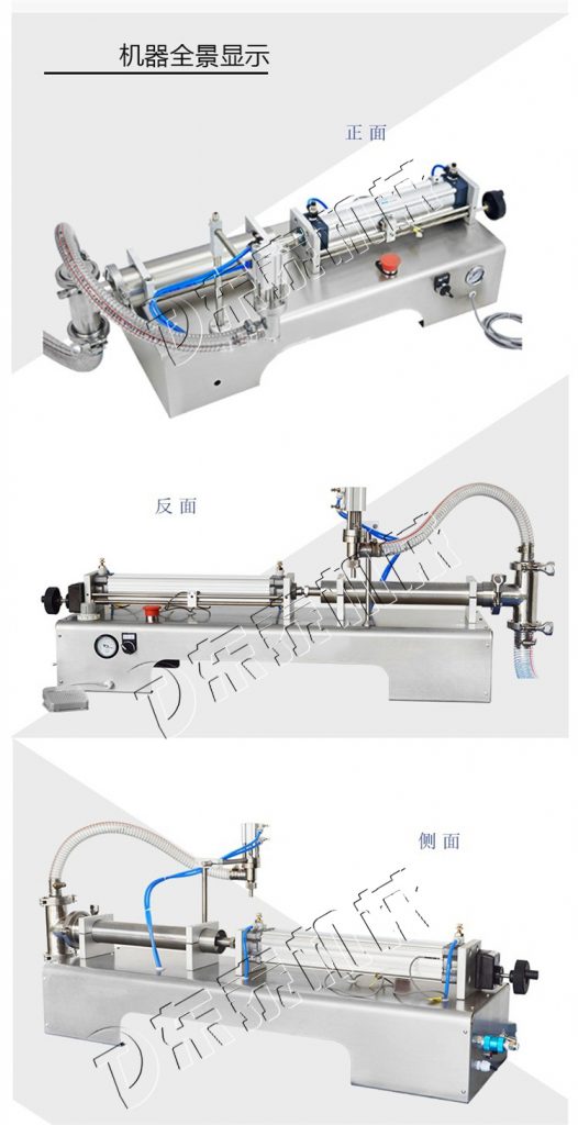 小型液體定量灌裝機(jī),通過氣缸帶動一個活塞來抽取和打出物料,用單項(xiàng)閥控制物料流向,小型液體定量灌裝機(jī)用磁簧開關(guān)控制氣缸的行程,即可調(diào)節(jié)灌裝量。