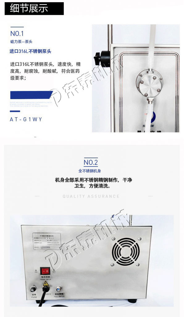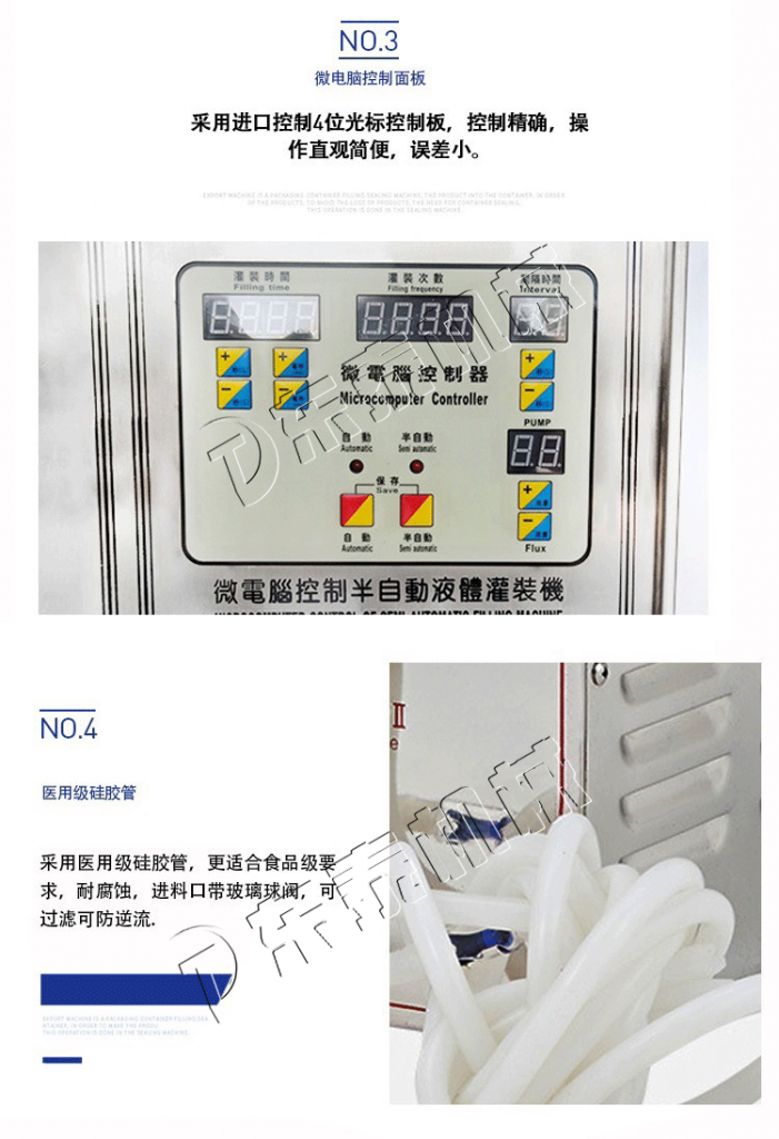 ① 本款醫(yī)用小型液體灌裝機是液體灌裝機中的一款暢銷產(chǎn)品,其采用變頻調速器,配進口高精度多圈電位器及可鎖表盤,使流量調節(jié)穩(wěn)定準確,誤差負偏小于0.5%,正偏小于1.5%。