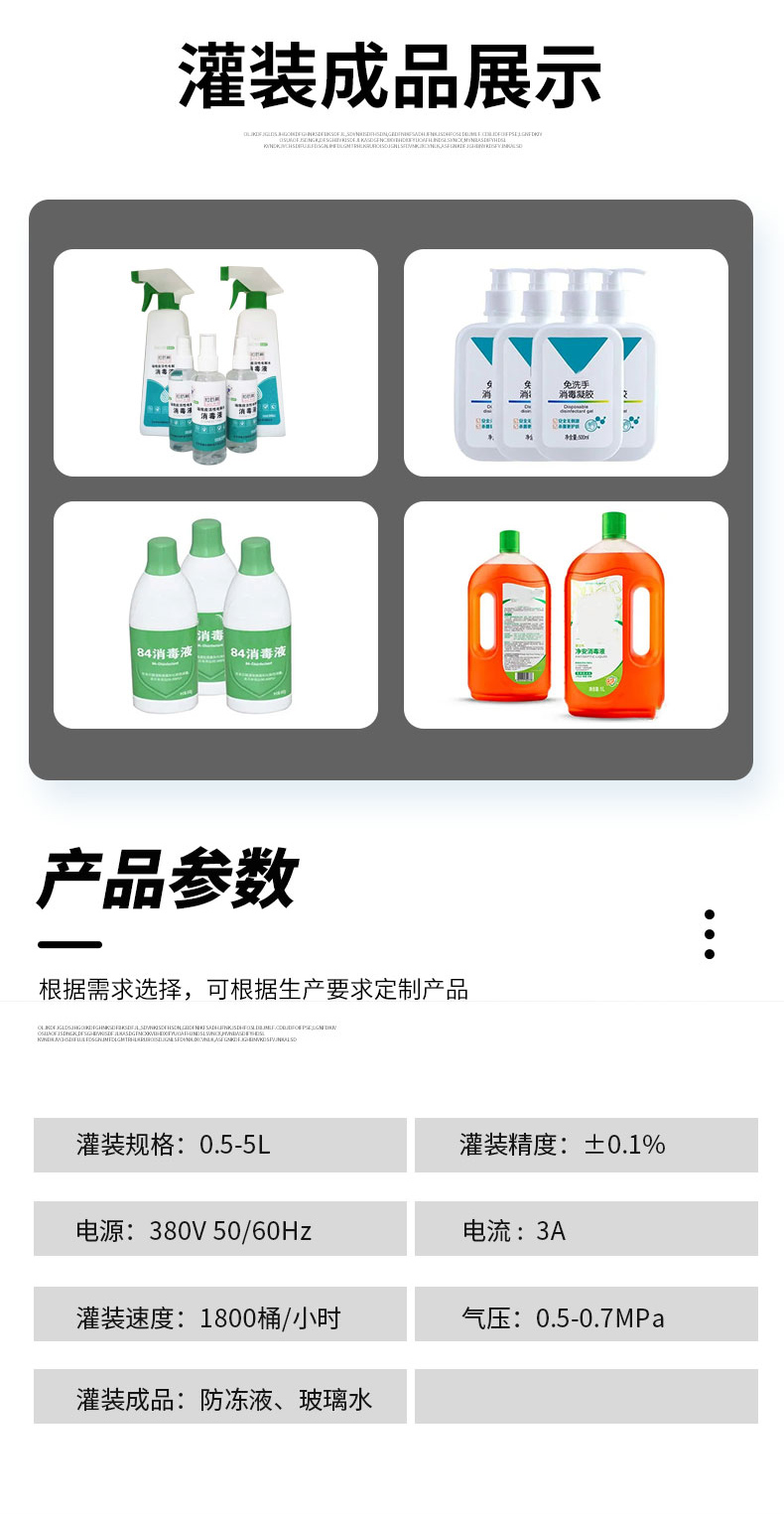 總的來說,消毒液灌裝機(jī)的操作原理非常簡單,只需要按照設(shè)備的提示進(jìn)行操作即可。同時(shí),消毒液灌裝機(jī)是一種高效、自動化的設(shè)備,能夠大大提高生產(chǎn)效率。